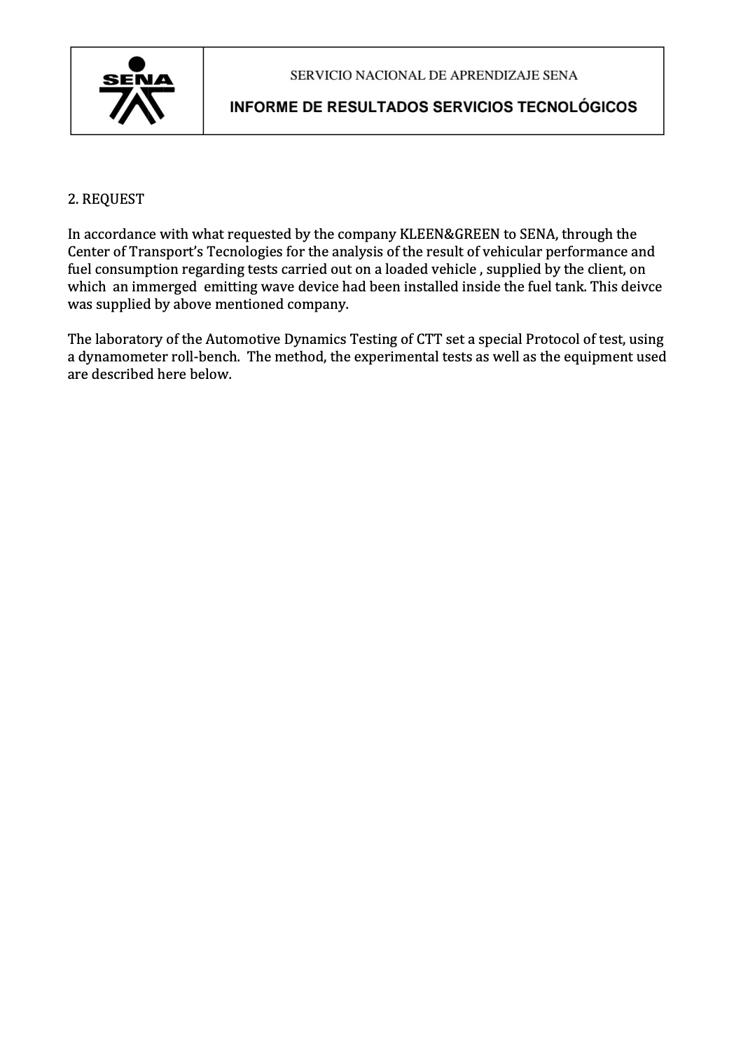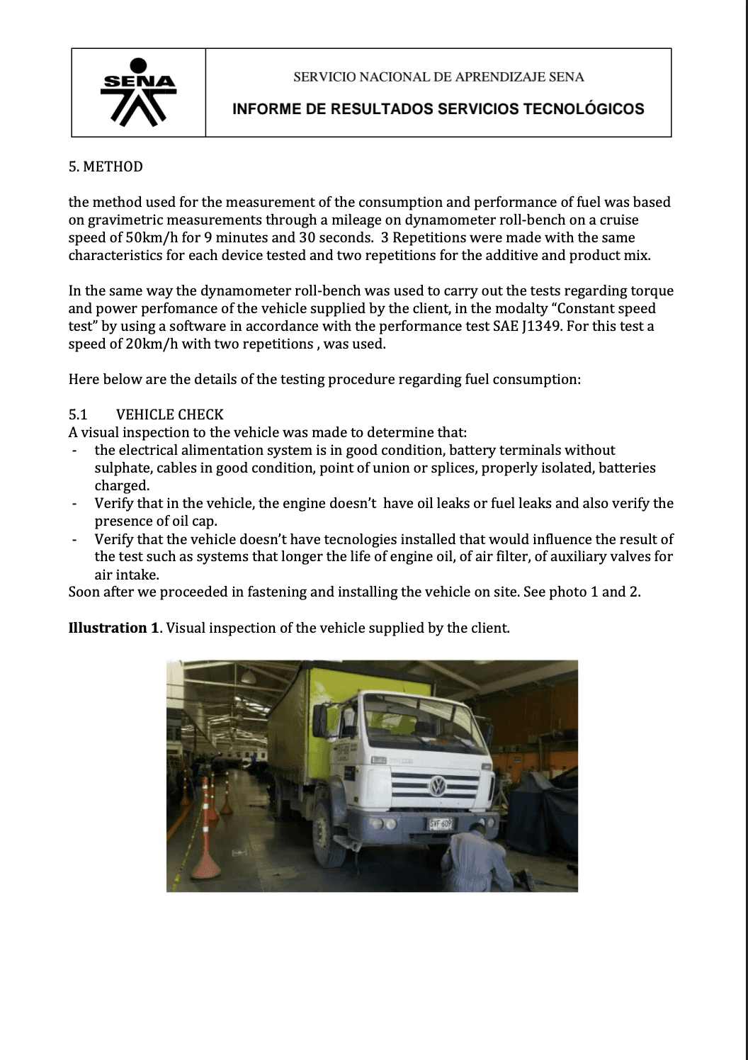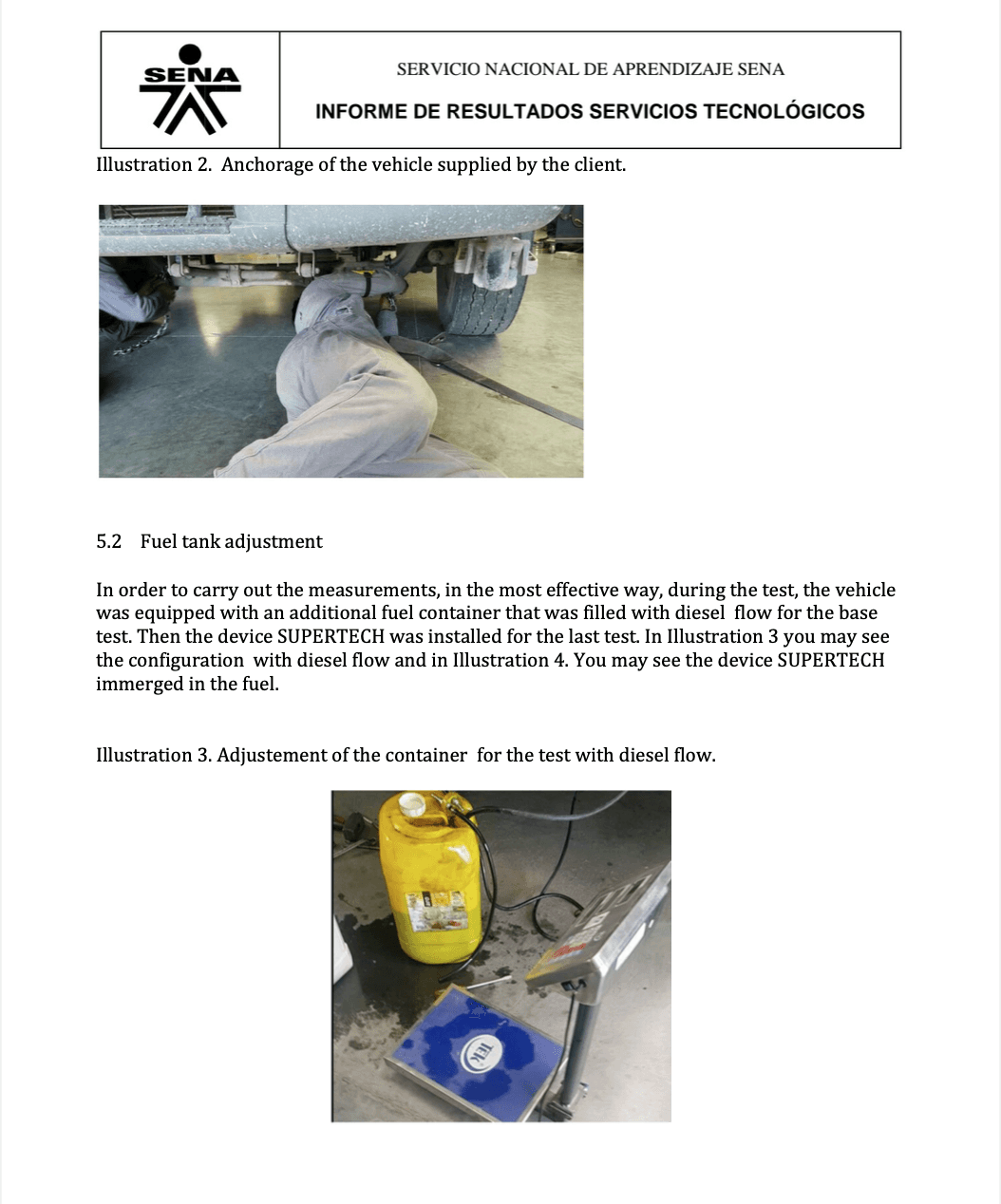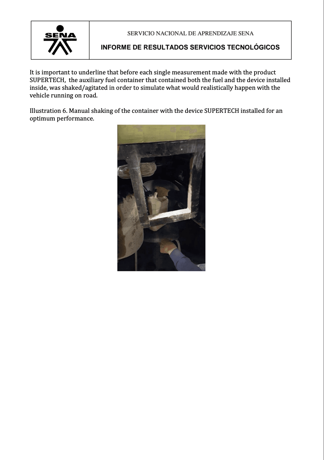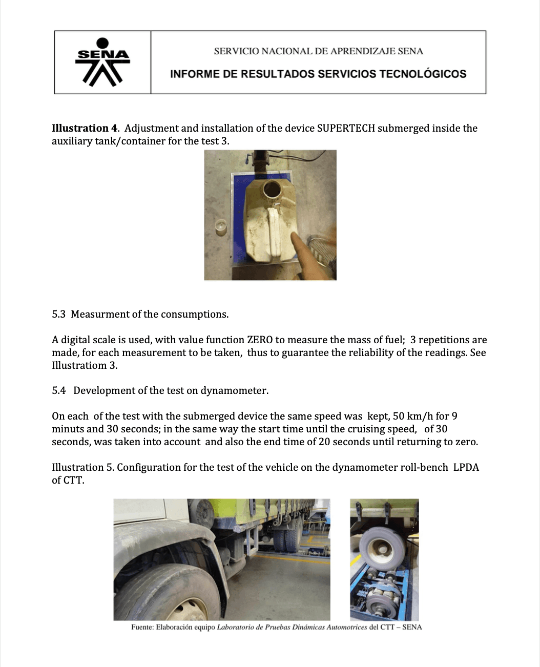 The Servicio Nacional de Aprendizaje (SENA), through its Transport Technologies Center (CTT) and SENNOVA research program, conducted a comparative laboratory evaluation to assess the impact of an upstream, in-tank fuel-conditioning device on vehicle fuel consumption and performance.