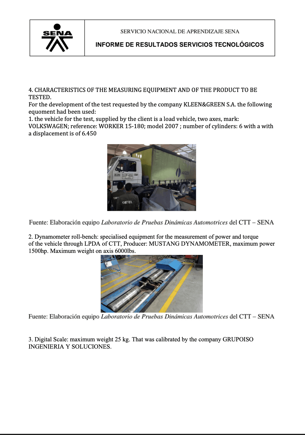 The evaluation was performed at SENA’s Automotive Dynamics Testing Laboratory in Bogotá, using controlled dynamometer roll-bench testing requested by an industrial applicant.
